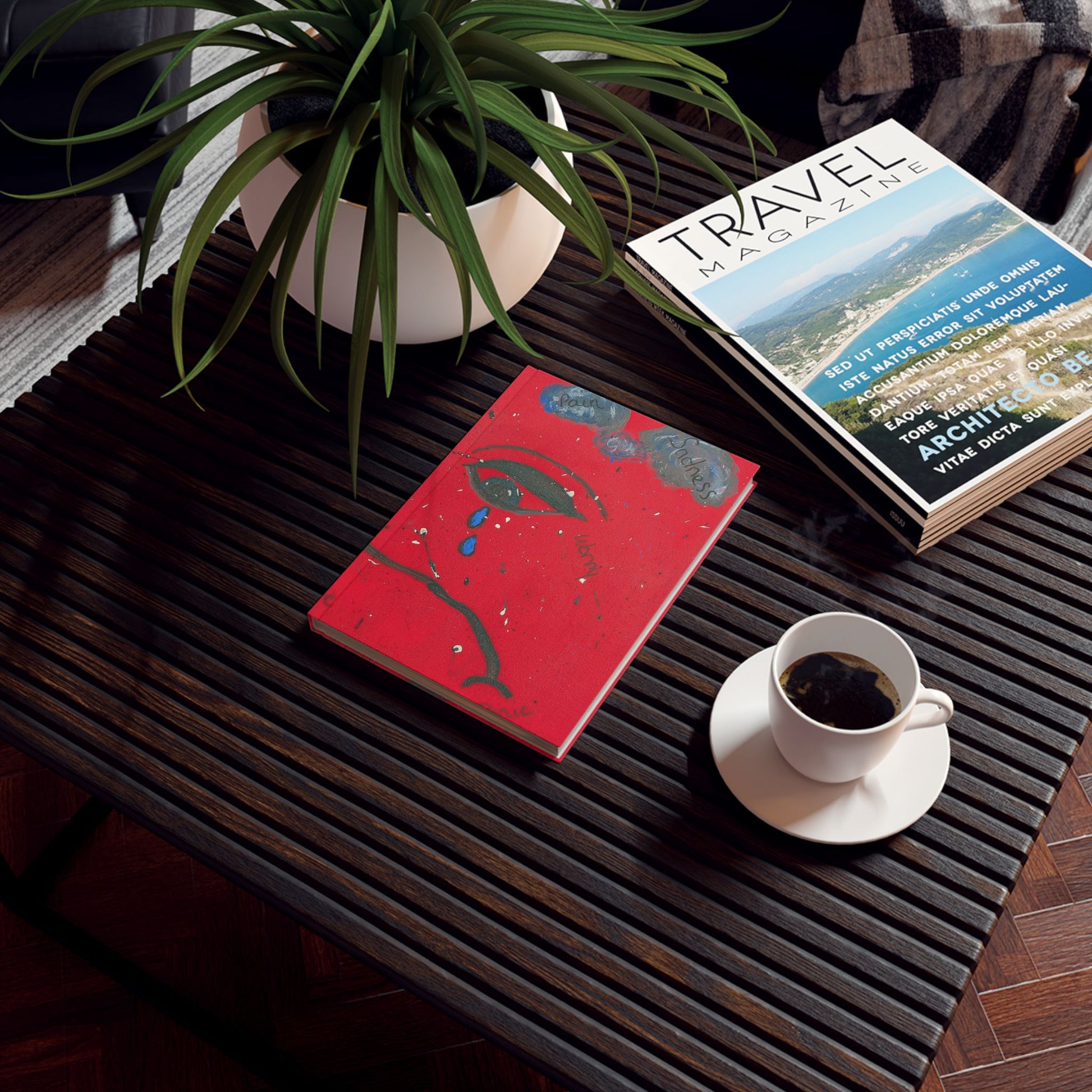 This Hard Backed Journal features original artwork by SG808 artist Teresa, created as an expression of heavy emotions and inner storms. Set against a bold red background, the piece names feelings many of us carry quietly, including anger, anxiety, sadness, panic, love, and hope. A single face with falling tears reminds us that bad days are real, and they are allowed.